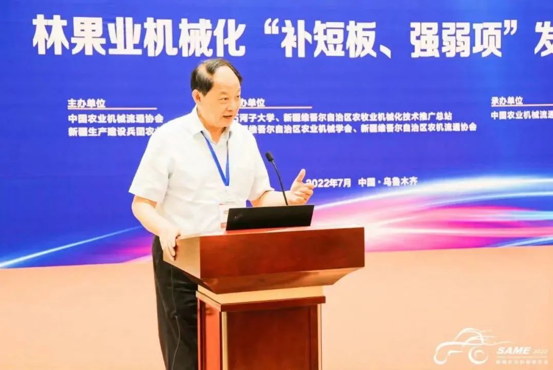 7月4日上午,林果业机械化“补短板、强弱项”发展论坛在2022新疆农业机械博览会期间举行。本次论坛由中国农业机械流通协会、新疆生产建设兵团农业机械化协会主办,石河子大学、新疆维吾尔自治区农牧业机械化技术推广总站、新疆维吾尔自治区农业机械学会、新疆维吾尔自治区农机流通协会协办,中国农业机械流通协会果蔬茶机械分会承办,邀请了5位建树颇丰、享有盛誉的专家共同探讨,研究解决行业问题。