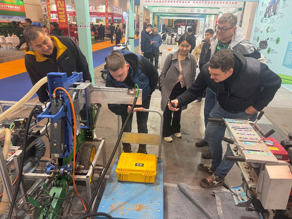展会现场,我院针对蔬菜、花生等特色经济作物研发的智能农机装备凭借先进技术与实用性能,吸引大批行业专家、农机经销商及种植大户驻足咨询。智能农机装备科研团队工作人员现场详解设备作业原理、技术优势与应用场景,与观展嘉宾深度交流,多款装备获高度认可,多家企业现场表达合作意向。