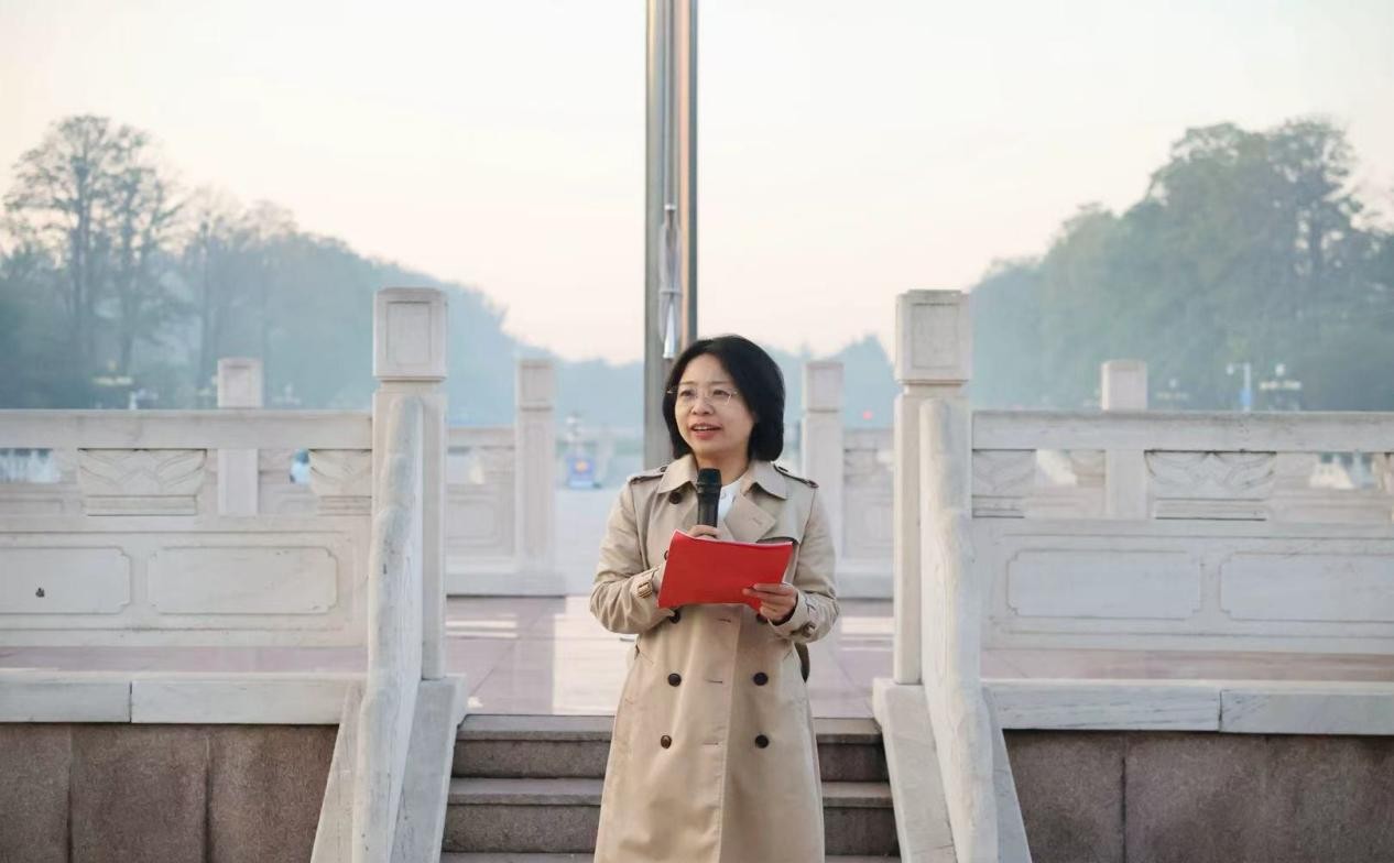 正步铿锵,口号嘹亮,国旗护卫队肩背笔直,旗面未展却已鲜红夺目。随着义勇军进行曲奏响,旗角飞扬,五星红旗冉冉升起,全体师生庄严肃立,齐唱中华人民共和国国歌。升旗礼毕,学院优秀学生代表电自化2202班张国祥发表国旗下演讲,他以“于国旗,言担当”为主题,结合自己退役士兵的经历,讲述了如何表达爱国情怀、践行担当精神,并呼吁同学们将历史使命勇担在肩,把个人理想融入国家和民族事业,以青春为笔,以奋斗为墨,为祖国的繁荣富强添砖加瓦。仪式最后,辅导员唐靓发言,她向同学们提出三点希望和要求:一是坚持爱国与奋斗同行,筑牢青春向党、强国有我的信仰根基;二是坚持学习与创新同行,锤炼求真务实、开拓进取的专业素养;三是坚持品德与修养同行,砥砺坚韧不拔、追求卓越的高尚品格,用脚踏实地的行动书写无愧于青春、无愧于时代的人生华章,为学院及学校的高质量发展、为国家的繁荣富强贡献自己的智慧和力量!