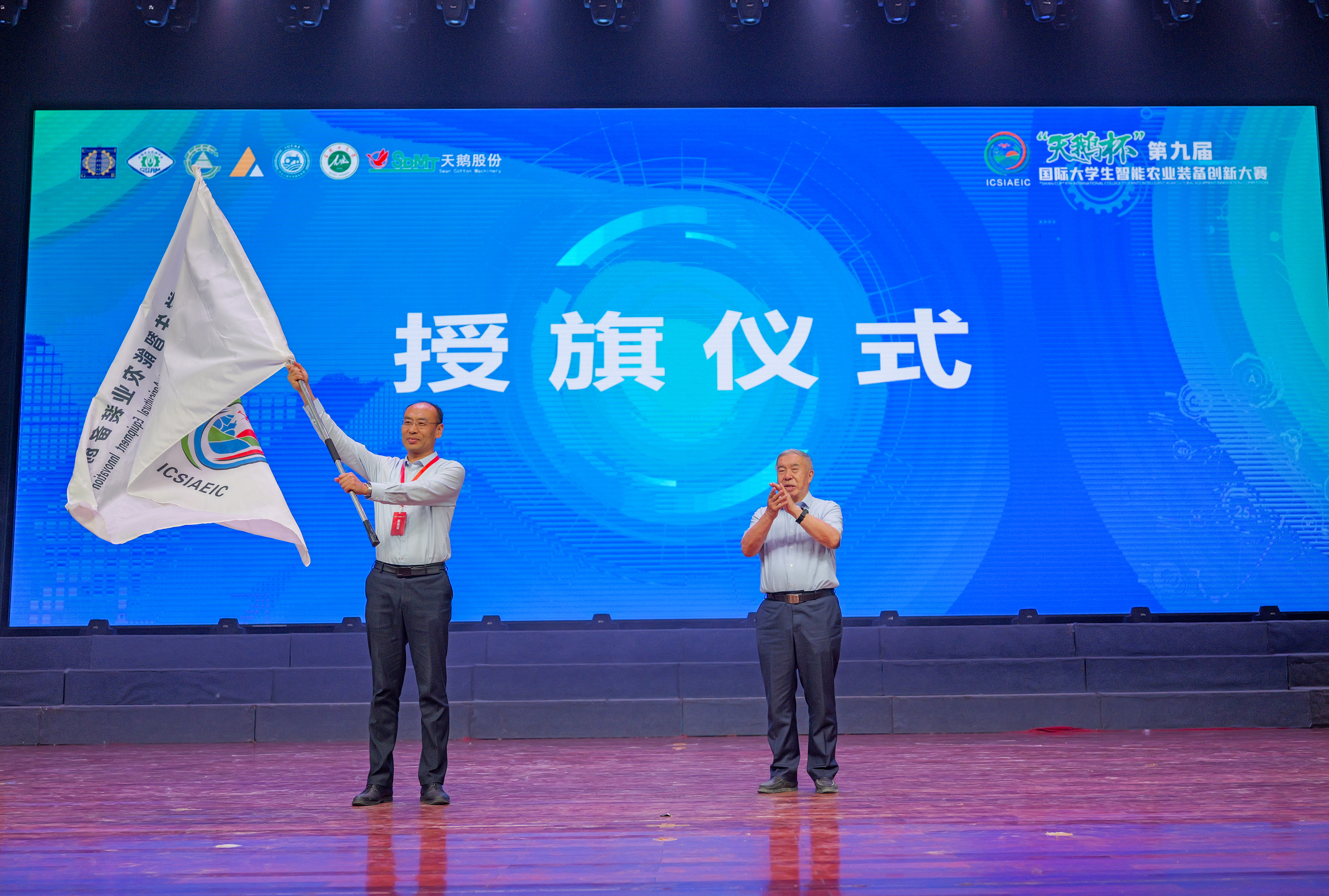 孟晓军代表学校进行了第十届国际大学生智能农业装备创新大赛承办权的申请汇报,详细介绍我校历史发展、办学特色、人才培养和办赛条件等方面情况。经评委会现场投票表决,我校成功获得第十届国际大学生智能农业装备创新大赛承办权。中国农业工程学会、中国农业机械学会名誉理事长、中国工程院陈学庚院士代表组委会授旗。该赛事目前已成功入选全国普通高校大学生竞赛排行榜竞赛项目名单,现已发展为农业装备工程领域最具影响力的大学生竞赛项目。