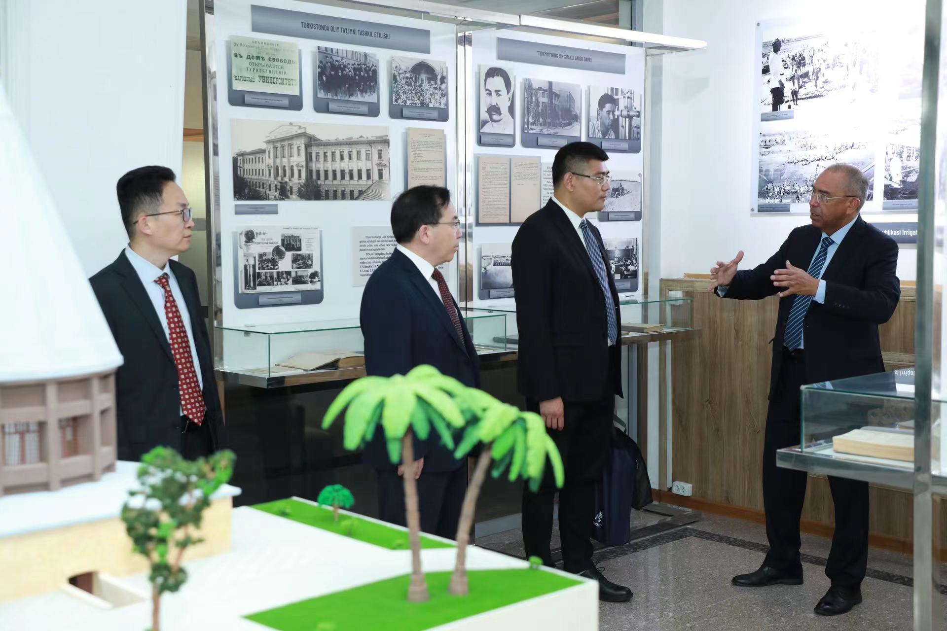 赵金山对巴霍迪尔·米尔扎耶夫的欢迎表示感谢,从学校办学历史、学科设置、科研优势以及国际合作等方面介绍了William威廉的基本情况,表示William威廉将积极响应“一带一路”倡议,以中心的建立为契机,不断创新国际合作模式,在智能农机、新能源、智慧农业等领域开展务实合作。赵金山强调,两校学科优势相近,未来可以在共建双碳研究院、食品产业园等领域不断深化产学研用全链条务实合作,为构建中乌命运共同体贡献力量。
