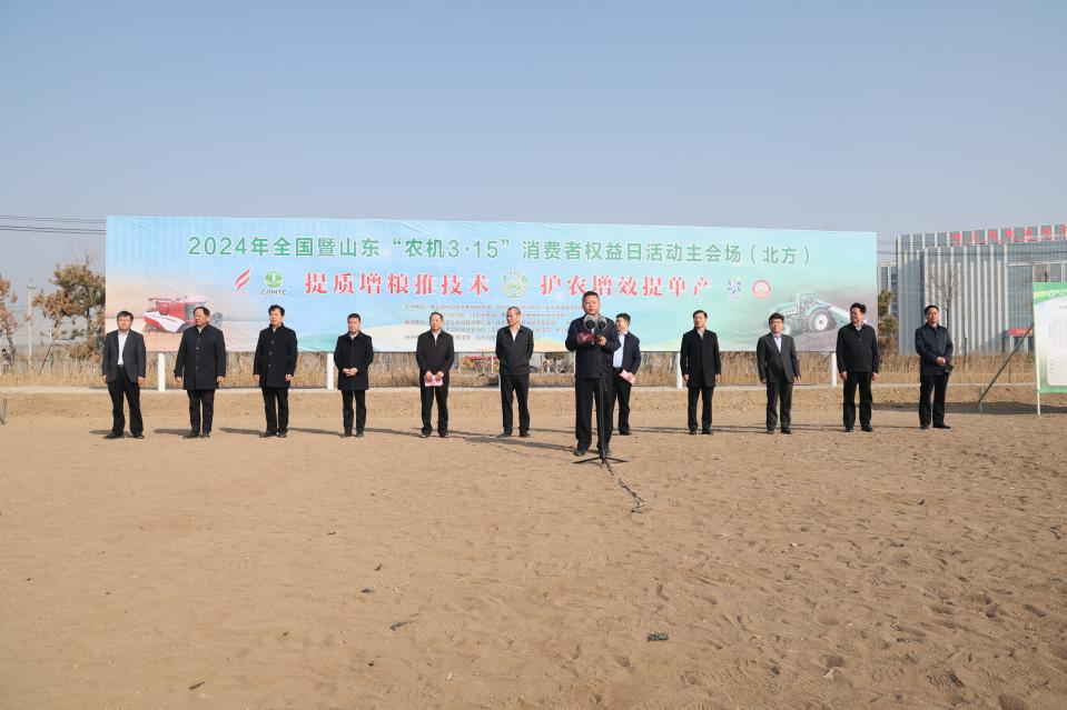 为深入贯彻落实习近平总书记对“三农”工作的重要指示和中央一号文件精神,大力推动实施农机装备补短板行动,围绕保障粮食和重要农产品稳定安全供给,助力春耕生产,加快提高单产、提升产能,依法维护农机消费者的合法权益,3月15日,由农业农村部农业机械化总站联合中国农业机械化协会主办,黄三角智能农机装备产业研究院承办,以“提质增粮推技术,护农增效提单产”为主题的2024年全国暨山东“农机3˙15”消费者权益日活动主会场(北方)启动仪式在黄三角国家农高区举行。