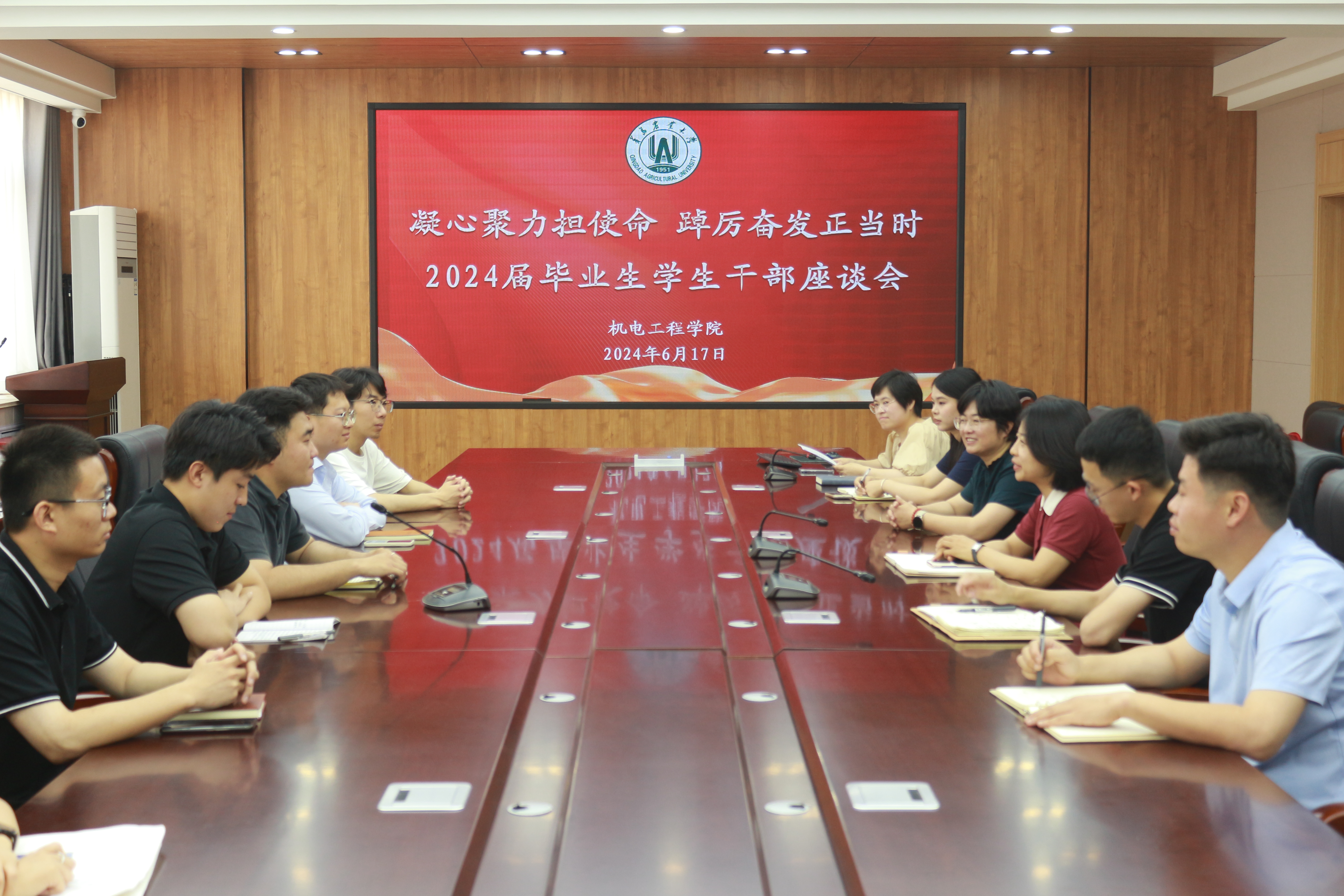 6月17日,williamhill威廉希尔“凝心聚力担使命 踔厉奋发正当时” 2024届毕业生学生干部座谈会在工程楼216会议室举行。学院党委副书记、副院长王海燕,团委书记孙晓凤,学院全体辅导员及20余名毕业生学生干部参加座谈,活动由辅导员唐靓主持。
