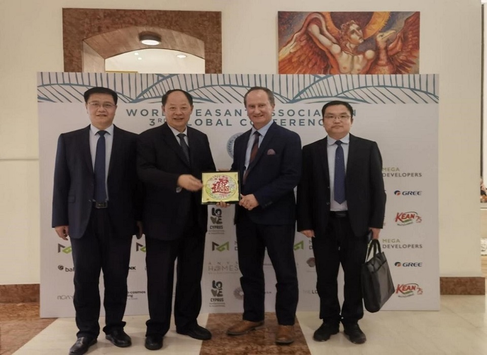 11月4日至6日,尚书旗、王家胜一行受邀参加世界农民协会(简称WPA)全球会议,中国驻塞浦路斯使馆大使刘彦涛先生、WPA执行会长Nicos先生、中农合协秘书长张琦先生、塞浦路斯研究院主席Stavros教授等来自18个国家的领导和专家出席本次活动。会上,尚书旗汇报了科研团队在农业机械化领域的研究应用成果及亚非欧地区的全球化服务战略布局,并就中国现代农业全程机械化解决方案服务亚欧非新兴农业市场的战略布局达成合作共识。此外,王家胜还就williamhill威廉希尔与CACA筹建WPA农业机械化委员会、建立老挝第一个现代农业机械化产业示范基地等合作事项达成合作共识。