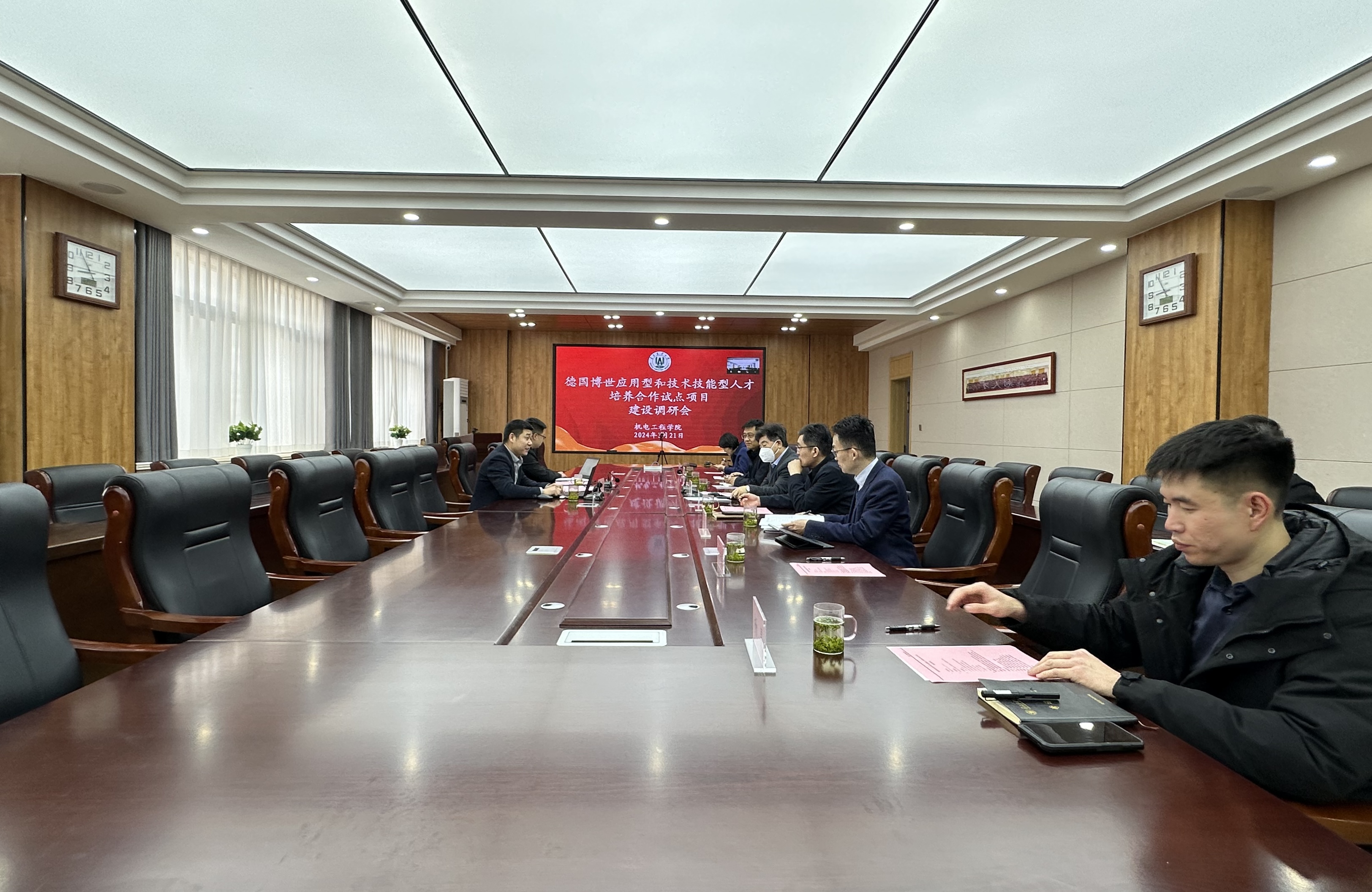 3月21日下午,德国博世应用型和技术技能型人才培养合作试点项目组专家潘涛、杨建林等一行到williamhill威廉希尔考察交流,并就人才培养合作试点建设进行调研。校党委委员、副校长田义轲出席座谈会,williamhill威廉希尔党政领导班子成员、学院各系主任及骨干教师参加。