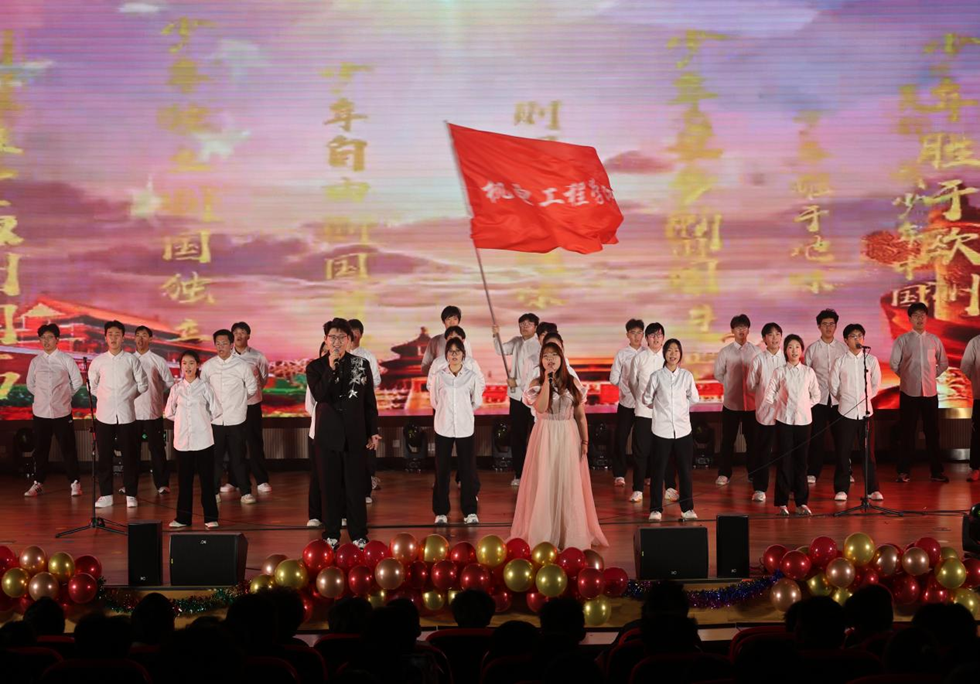 晚会在恢弘大气的开场舞《灯火里的中国》中正式启幕。歌曲《飞云之下》诉说着当代大学生在追寻梦想路上的努力与奋进;辅导员高海成带领学生代表共同演唱的《明天会更好》将晚会氛围推向小高潮。舞台剧《元旦大作战》极具创意,以班级日常学习生活为蓝本,再现校园时光的点滴趣事,让现场观众忍俊不禁的同时倍感温暖;诗朗诵《不朽的丰碑》、《少年中国说》、舞蹈《禾下乘凉梦》生动展现了williamhill威廉希尔师生同心、朝气蓬勃的精神风貌,既是对时代的回应,更是机电学子许下的青春承诺,让现场氛围达到顶峰。