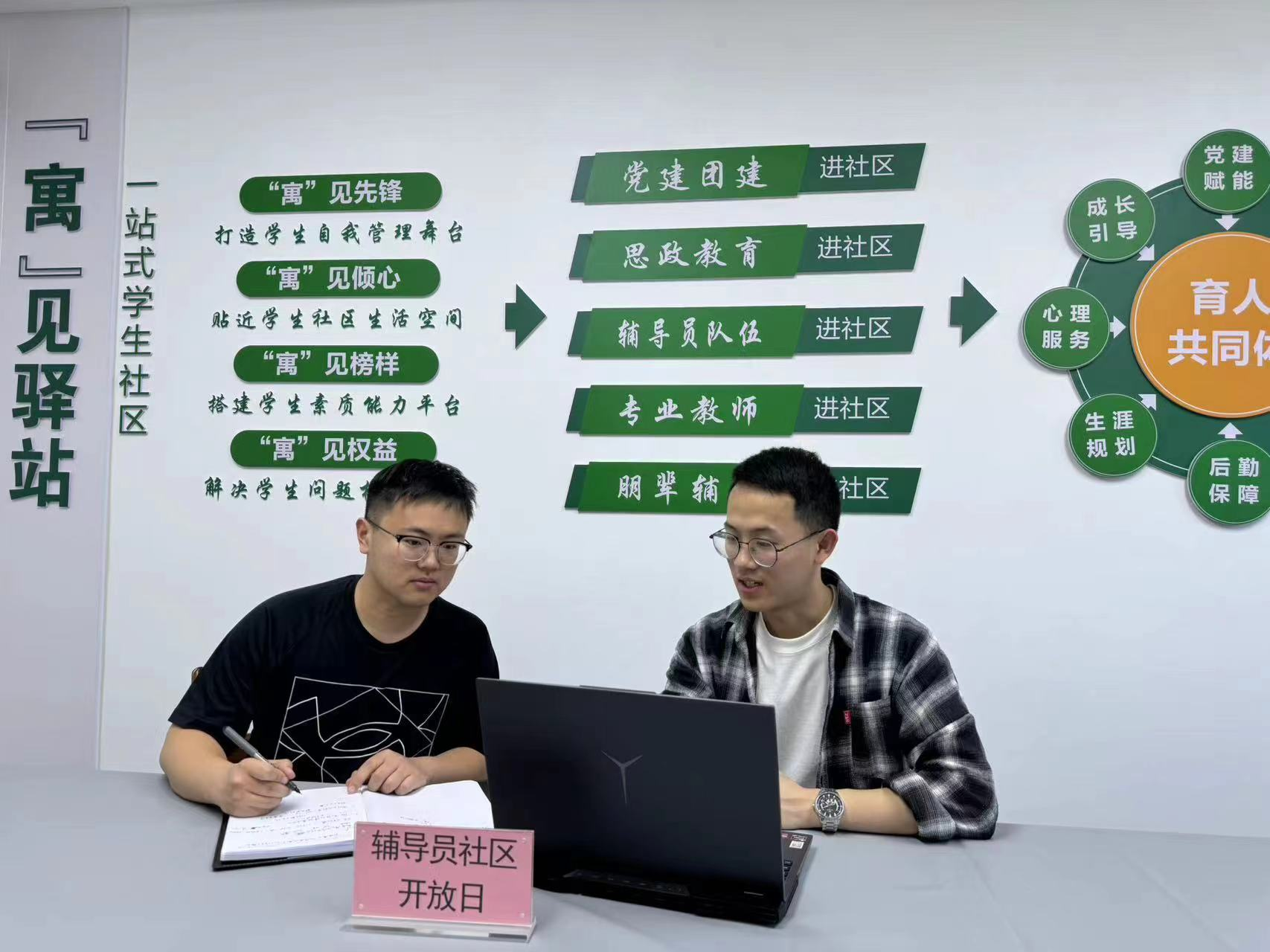 学院着力打造服务师生线下交流的“第三空间”,建立辅导员入驻学生社区制度,设立辅导员社区开放日,每天安排1名辅导员入驻“一站式”社区办公,全面了解学生生活状态和思想动态,点对点解答学生有关思想、生活、学业、就业等方面的疑惑。针对学业困难、心理不适等各类问题学生开展“辅导员下午茶”活动,通过谈心谈话及时有效调适学生心理、化解学生问题。截至目前,学院10名辅导员均已入驻“一站式”社区,真正实现了辅导员与社区学生同场域、同频率、同成长。