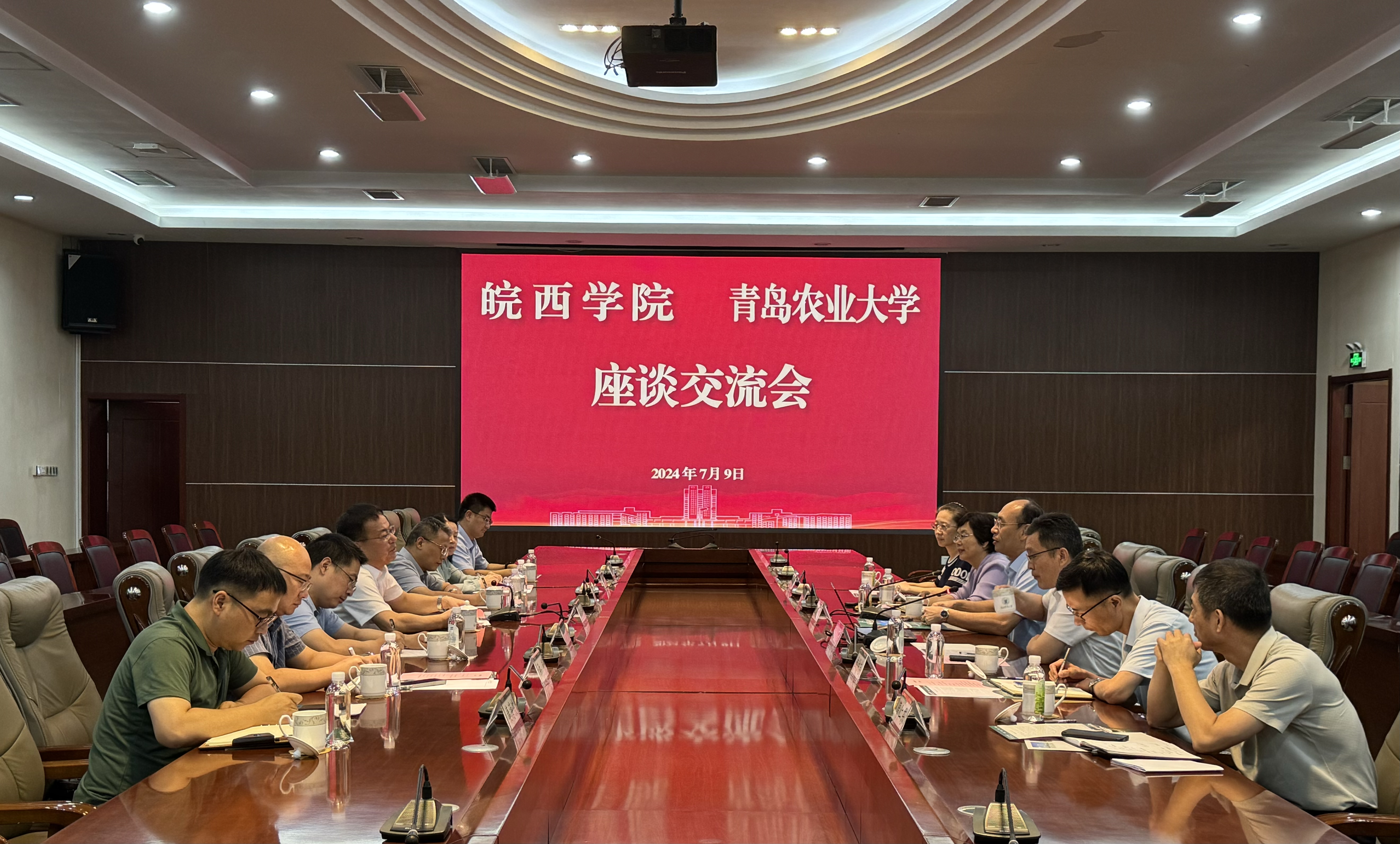 7月9日下午,皖西学院党委副书记、校长黄友锐一行来访William威廉并座谈交流,校党委书记潘军亲切会见来访客人,副校长孟晓军出席座谈交流会,会议由williamhill威廉希尔党委书记焦磊主持。